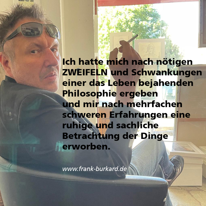Im Jahr 1972 in Rottweil geboren ist Frank Burkard seit einiger Zeit in seine Heimat zurückgekehrt, um in vertrauter Umgebung sein künstlerisches Schaffen weiter zu entwickeln. Voraussetzungen sind vielfältige Erfahrungen, im Besonderen das Studium an der Pädagogischen Hochschule Freiburg (1994 – 1999) mit dem Hauptfach Kunst am Institut Bildende Kunst.